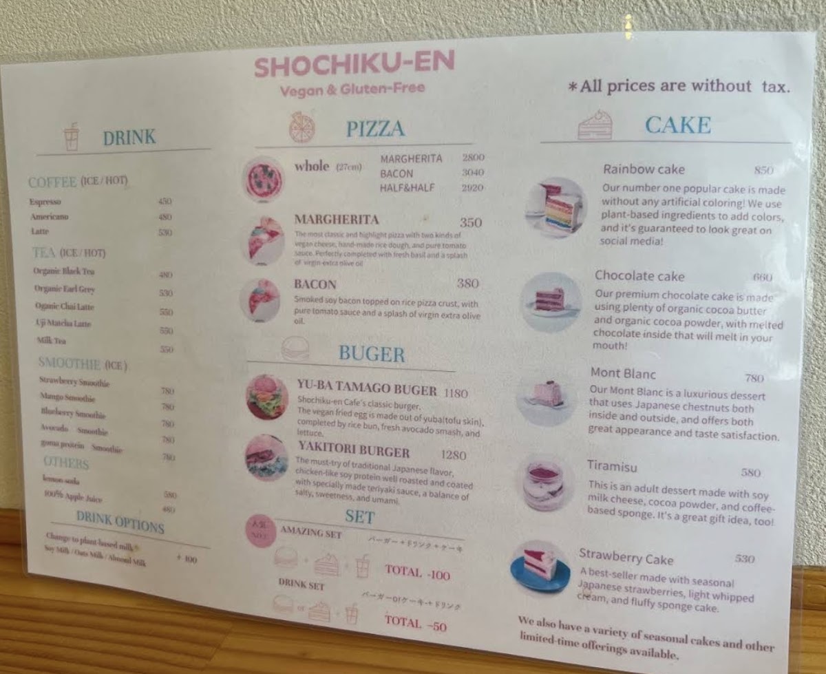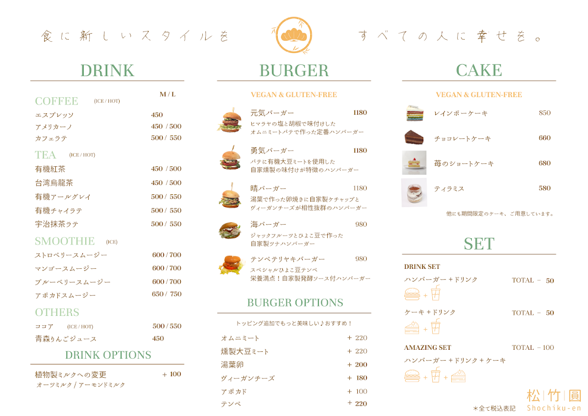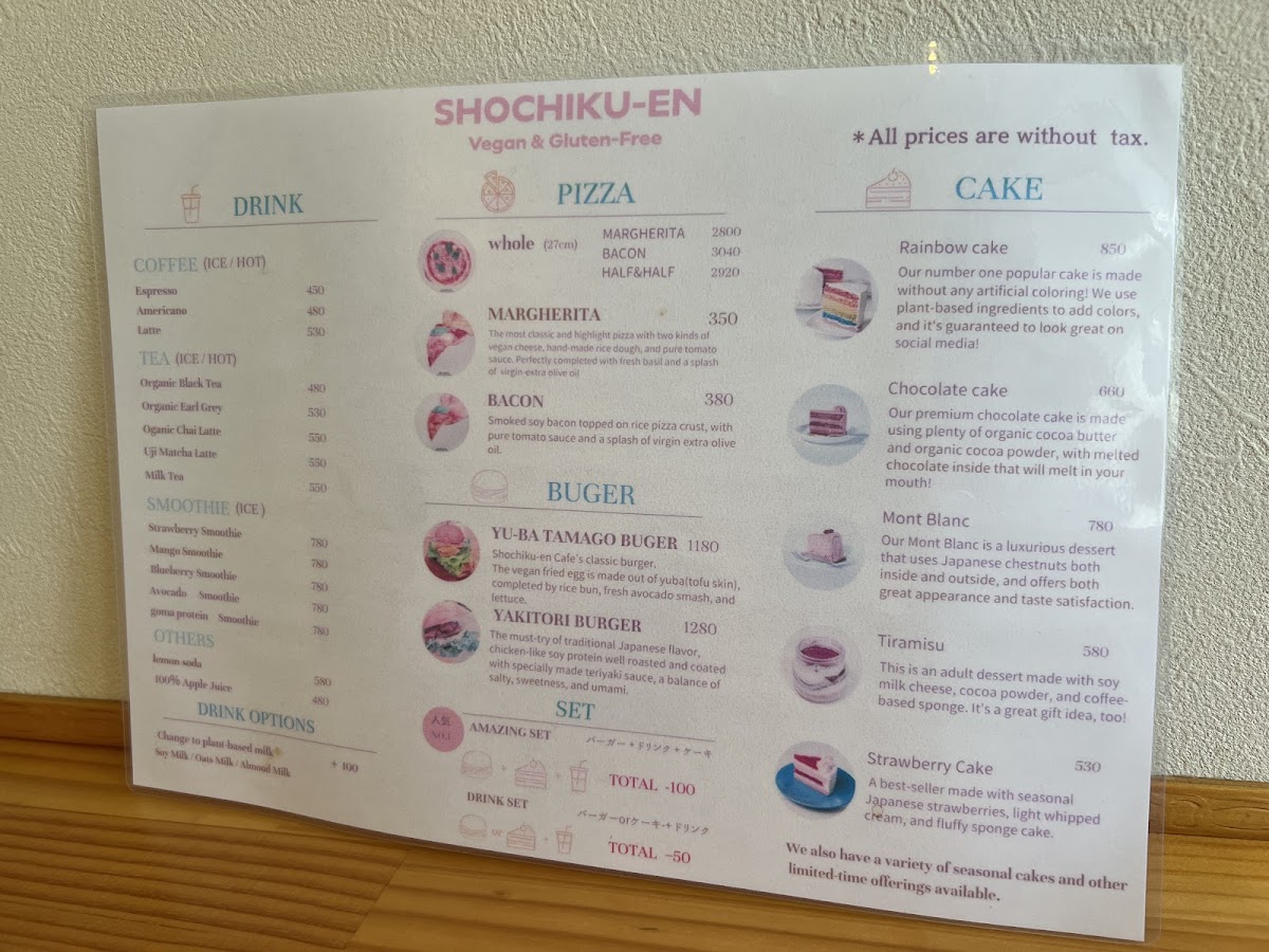 Shochikuen Cafe offers a menu that blends simple, comforting café fare with thoughtful vegan and gluten-free options. The selection is designed for casual bites and relaxed moments, making it an inviting spot whether you’re stopping by for a morning coffee, a light lunch, or a sweet afternoon treat.